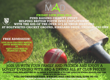 SFL:MAD Cricket Fund Raising Day 24th June 2016 SFL:MAD Cricket Fund Raising Day - Friday 24th June 2016 Skills for Life: Making a Difference!! Holtwhites Cricket Club, 1 Kirkland Drive, Enfield, Middlesex... Local News